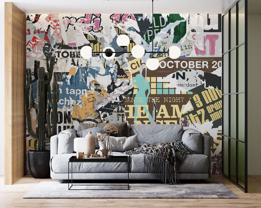 Vintage Newspaper Graffiti Colorful Wallpaper Mural