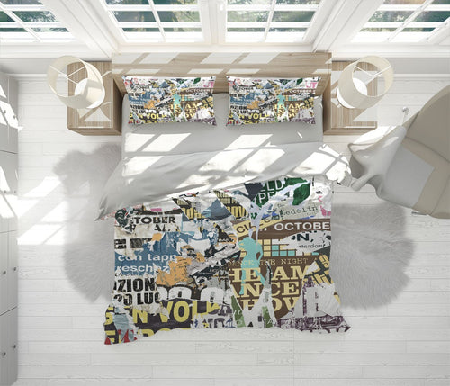 Vintage Newspaper Duvet Cover Set W Pillow Cover, Multicolour Graffiti Graffiti 3D Quilt Cover, Single Double Queen King Size Doona Cover