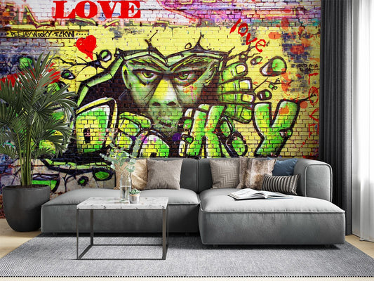 Graffiti Gorilla Multicolour Wallpaper Mural,Self-Adhesive Peel And Stick 3D Wall Paper,Bedroom Designer Wall Decor