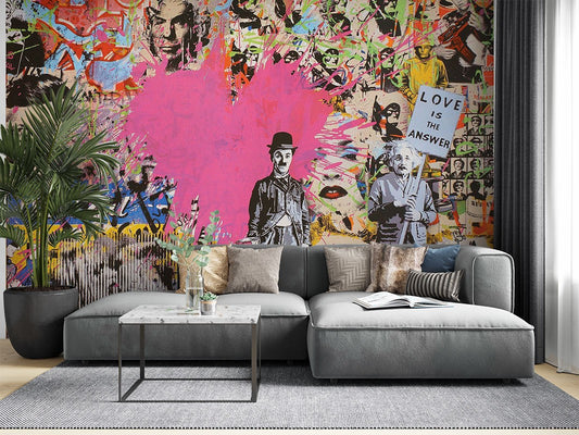 Einstein Chaplin Graffiti Colorful Wallpaper Mural
