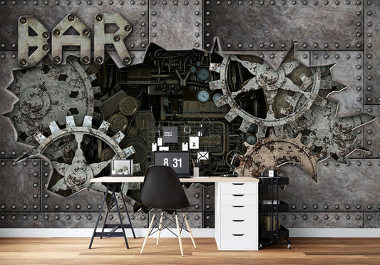 Mechanical Gear Hobby Collections Gray Wallpaper Mural,Self-Adhesive Peel And Stick 3D Wall Paper,Designer Removable Wall Decor