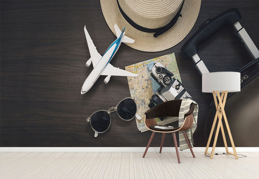 Travelling Hobby Collections Gray Wallpaper Mural,Self-Adhesive Peel And Stick 3D Wall Decor,Removable Bedroom Wall Decor