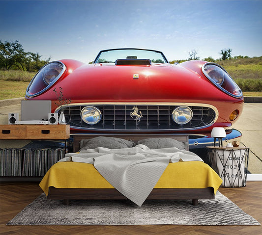 Red Convertible Vehicle Super Car Red Wallpaper Mural,Self-Adhesive Peel And Stick 3D Wall Decal,Australian Company Removable Wall Decor