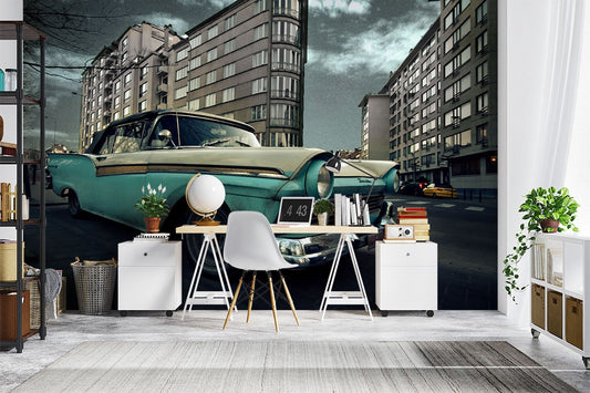 Sports Car Vehicle Vintage Car Green Wallpaper Mural,Self-Adhesive Peel And Stick 3D Wall Decal,Designer Australian Company Wall Decor