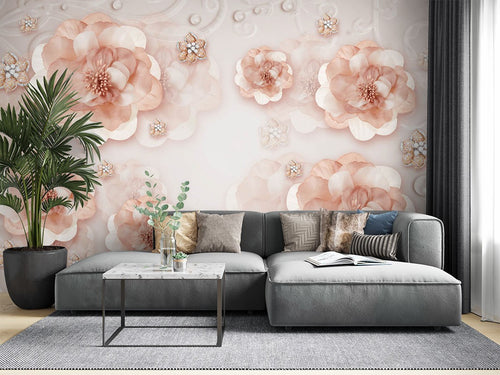 Jewelry Carving Art 3D Pink Wallpaper Mural