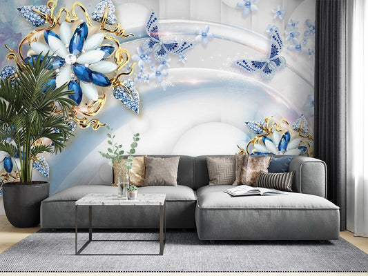 Gemstone Carving Art 3D Blue Wallpaper Mural