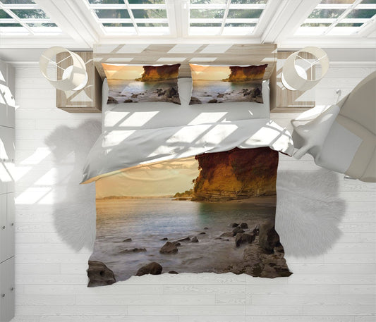Rock Mountain Duvet Cover Set W Pillow Cover, Multicolour Beach Seas & Oceans 3D Quilt Cover, Single Double Queen King Size Doona Cover