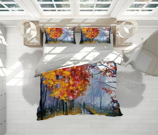 Sunshine Tree Duvet Cover Set W Pillow Cover, Gold Forest Plant 3D Quilt Cover, Single Double Queen King Size Doona Cover