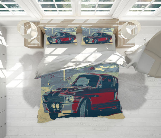 Mustang Ford Duvet Cover Set W Pillow Cover, Red Vehicle Super Car 3D Quilt Cover, Single Double Queen King Size Doona Cover