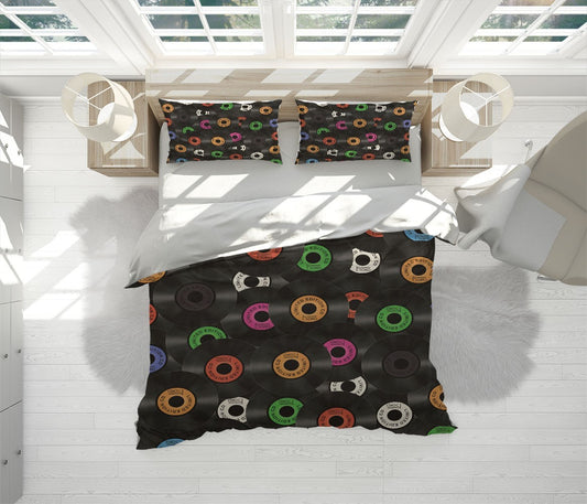 Vinyl Records Duvet Cover Set W Pillow Cover, Dark Hobby Music 3D Quilt Cover, Single Double Queen King Size Doona Cover