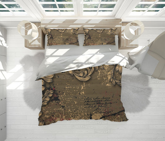 Carving Butterfly Duvet Cover Set W Pillow Cover, Brown Floral Flowers 3D Quilt Cover, Single Double Queen King Size Doona Cover