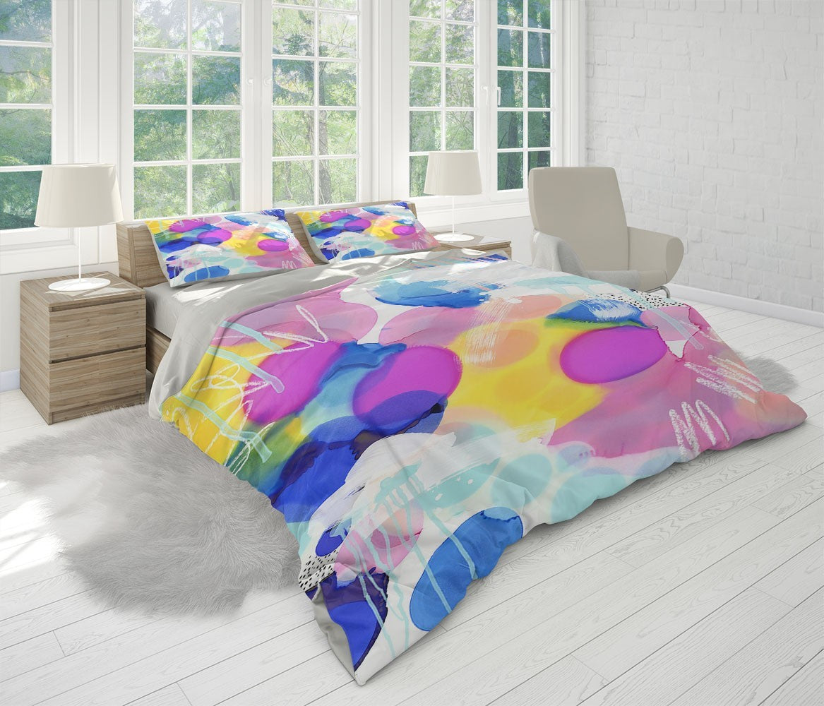 Contemporary Painting Duvet Cover Set W Pillow Cover, Creamy Art Abstract 3D Quilt Cover, Single Double Queen King Size Doona Cover