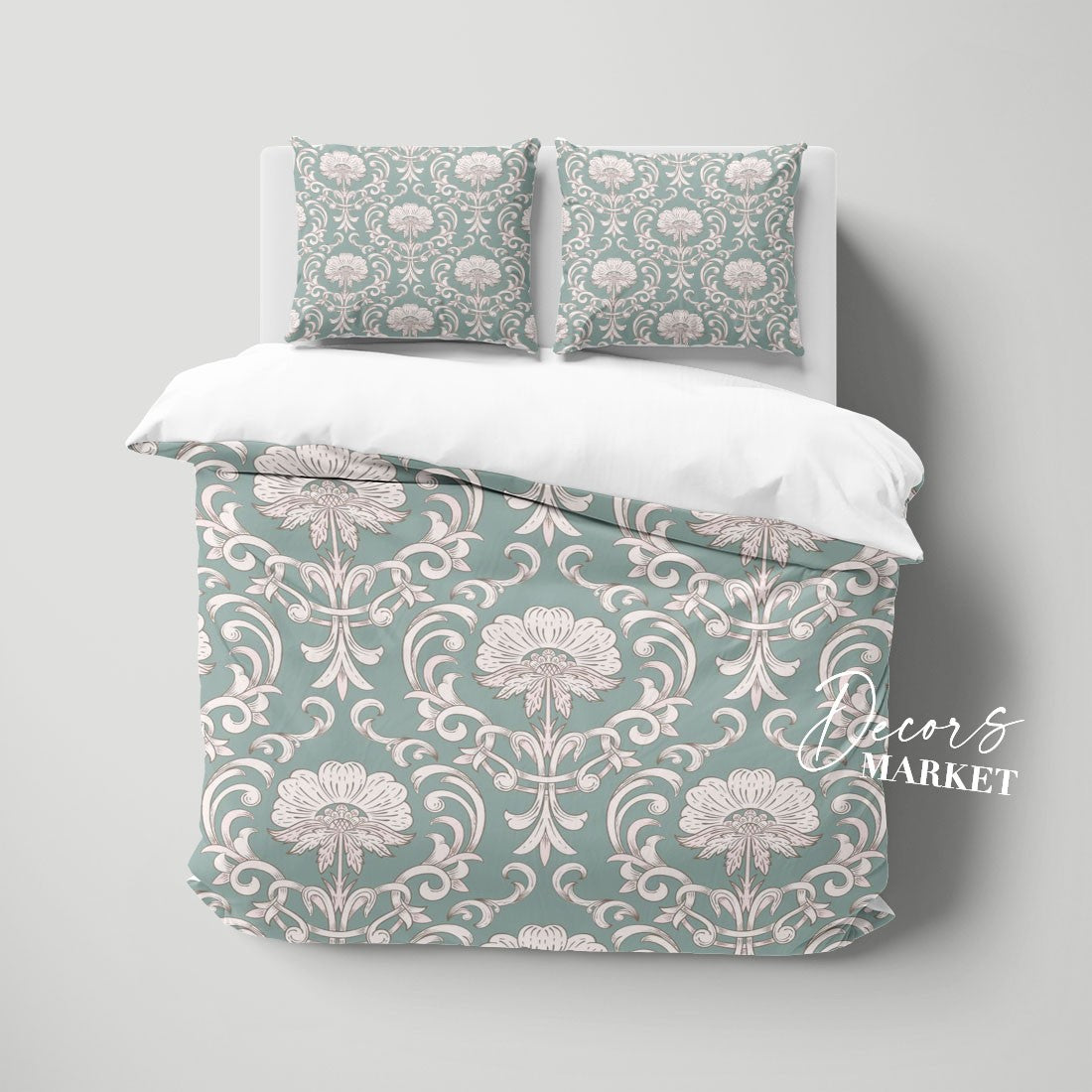 Elegant Damask Duvet Cover Set w Pillowcases, Green Leaves Floral Patterns 3D Quilt Cover, 3pc Single Double Queen King Size Doona Cover