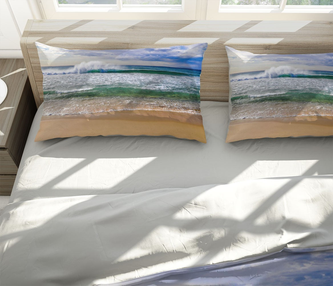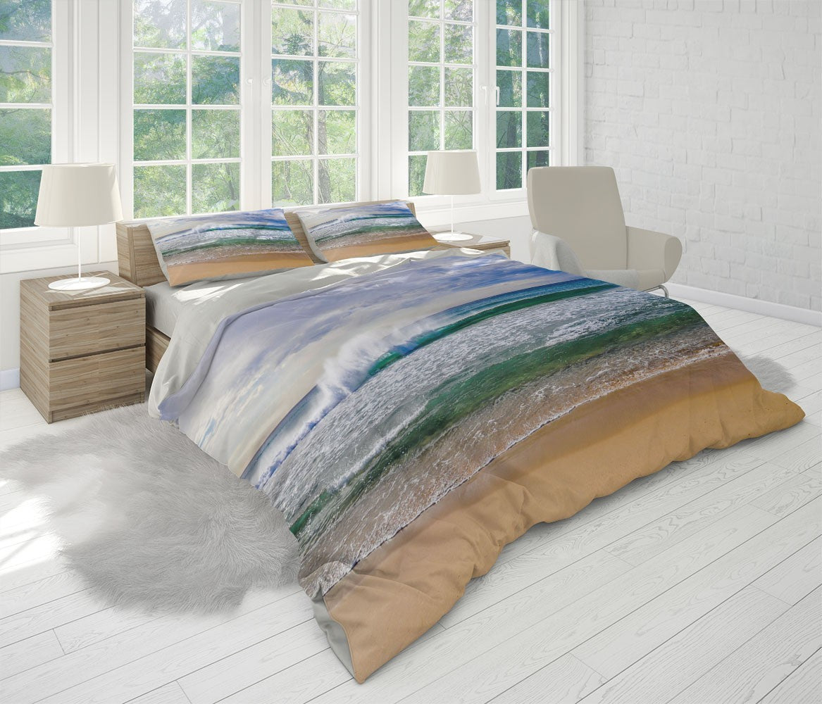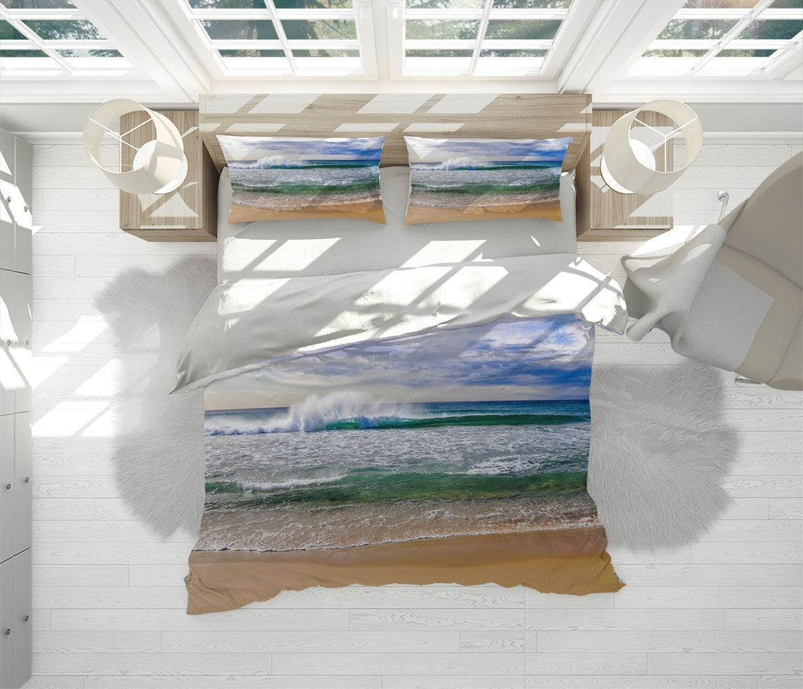 Sand Cloud Duvet Cover Set W Pillow Cover, Blue Beach Wave 3D Quilt Cover, Single Double Queen King Size Doona Cover