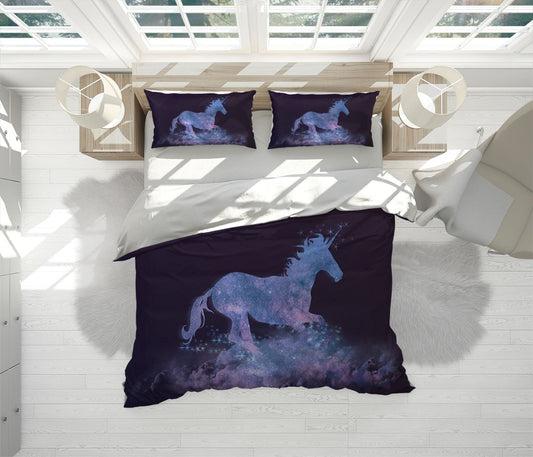 Purple Unicorn Duvet Cover Set W Pillow Cover, Purple Kids Fantasy 3D Quilt Cover, Single Double Queen King Size Doona Cover