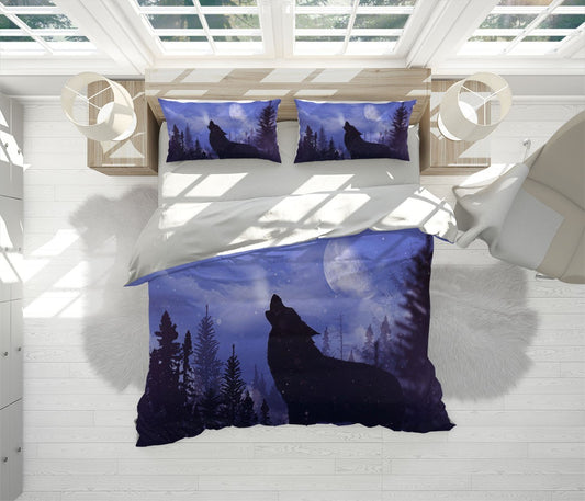 Howling Wolf Duvet Cover Set W Pillow Cover, Purple Animals Wild Animals 3D Quilt Cover, Single Double Queen King Size Doona Cover