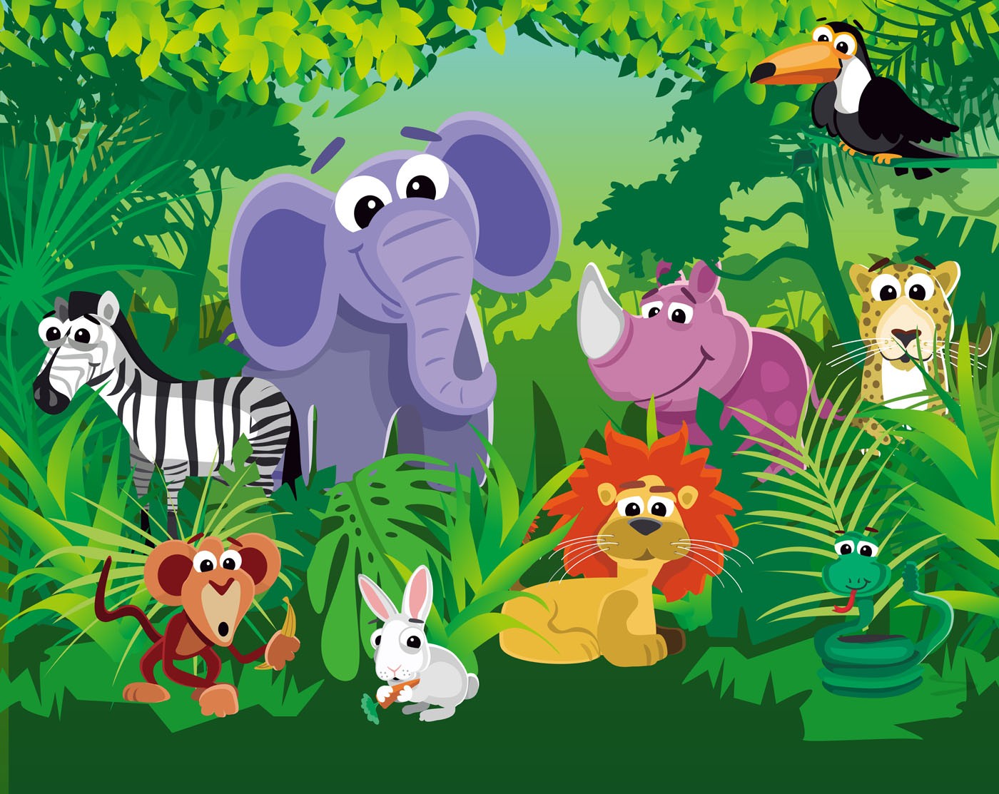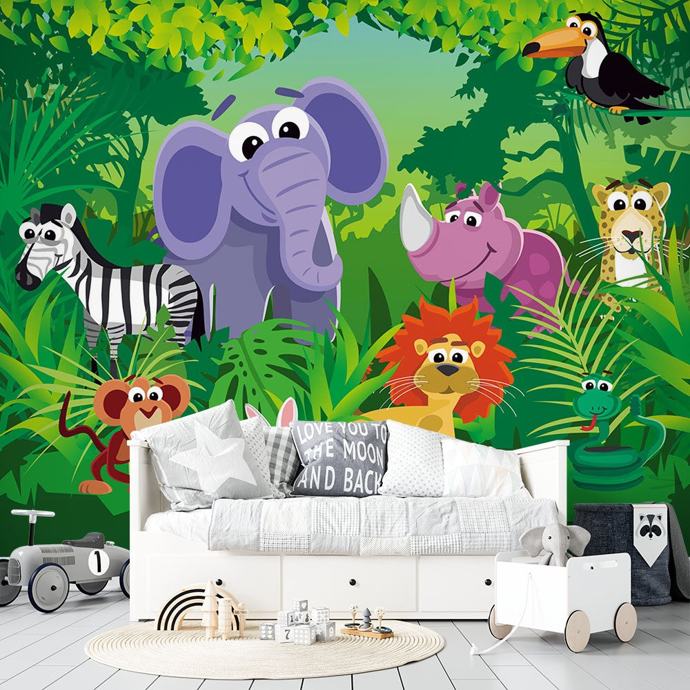 African Animals Kids Animal Green Wallpaper Mural,Self-Adhesive Peel And Stick 3D Wall Decor,Australian Company Removable Wall Decor
