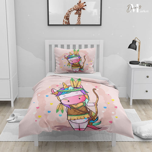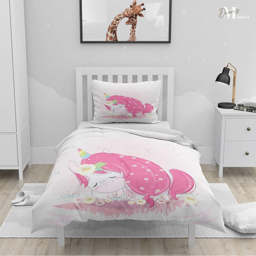 Unicorn Pink Duvet Cover Set W Pillow Cover, Pink Kids Animal 3D Quilt Cover, Single Double Queen King Size Doona Cover