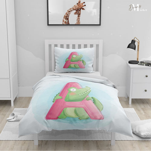 Rabbit Giraffe Duvet Cover Set W Pillow Cover, Green Kids Animal 3D Quilt Cover, Single Double Queen King Size Doona Cover