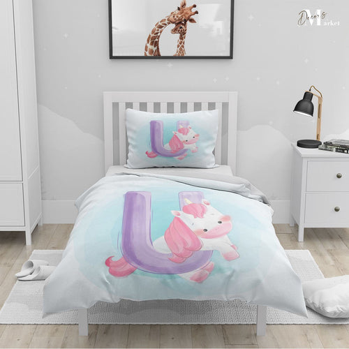 Unicorn Watercolor Duvet Cover Set W Pillow Cover, Blue Kids Animal 3D Quilt Cover, Single Double Queen King Size Doona Cover