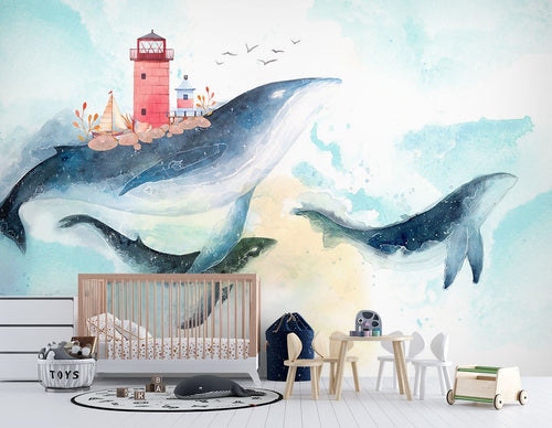 Papa Whale Kids Art For Kids Colorful Wallpaper Mural