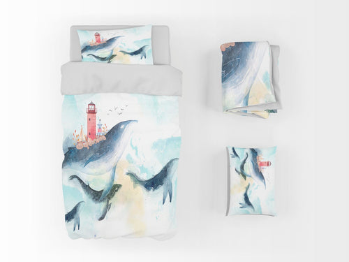 Whale Castle Kids Animal Multicolour 3D Duvet Cover Set W Pillow Cover, Single Double Queen King Size, Printed Cotton Quilt Doona Cover
