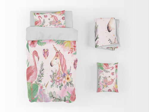 Unicorn Flamingo Kids Animal Multicolour 3D Duvet Cover Set W Pillow Cover, Single Double Queen King Size, Printed Cotton Quilt Doona Cover