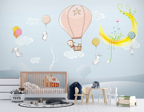 Paris Balloon Kids Fantasy Multicolour Wallpaper Mural,Self-Adhesive Peel And Stick 3D Wall Decal,Bedroom Designer Wall Decor