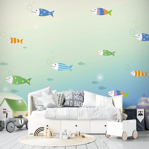 Underwater Houses Art For Kids Multicolour Wallpaper Mural,Self-Adhesive Peel And Stick 3D Wall Art,Australian Company Bedroom Wall Decor