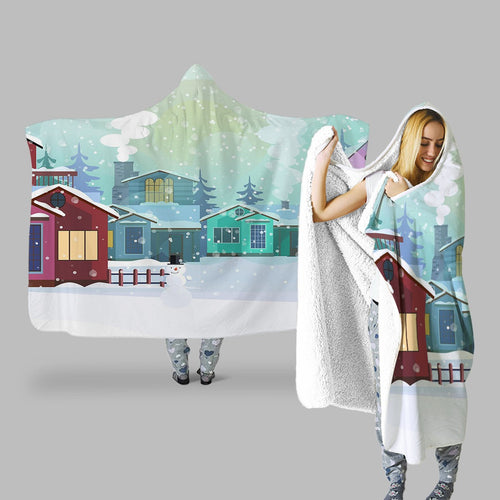 Winter Snow Houses Kids Cartoon Multicolour Personalized Hooded Throw Blanket Fleece Hoodie Cape