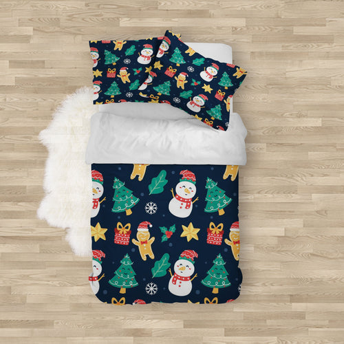 Snowman Christmas Tree Duvet Cover Set W Pillowcases, Colorful Kids Cartoon 3D Quilt Cover, 3Pc Single Double Queen King Size Doona Cover