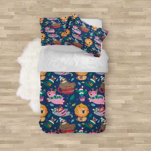 Bear Bird Christmas Hat Duvet Cover Set W Pillowcases, Colorful Kids Patterns 3D Quilt Cover, 3Pc Single Double Queen King Size Doona Cover
