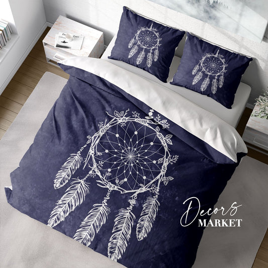 Dreamcatcher Pattern Totem Duvet Cover Set w Pillowcases, Gray Kids Fantasy 3D Quilt Cover, 3pc Single Double Queen King Size Doona Cover
