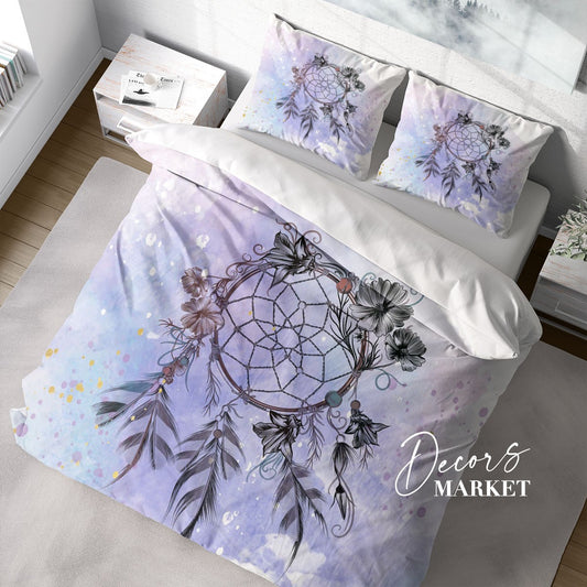 Dreamcatcher Watercolor Duvet Cover Set w Pillowcases, Purple Kids Fantasy 3D Quilt Cover, 3pc Single Double Queen King Size Doona Cover