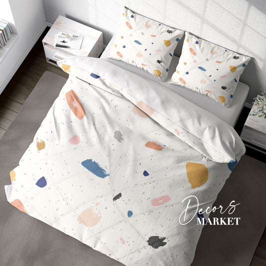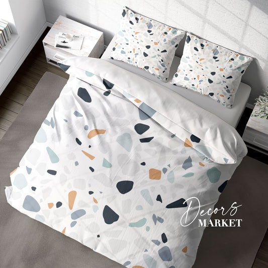 Watercolor Scandinavian Terrazzo Duvet Cover Set w Pillowcases, Creamy Kids 3D Quilt Cover, 3pc Single Double Queen King Size Doona Cover