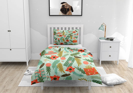 Christmas Tree Gift Duvet Cover Set w Pillowcases, Green Kids Patterns 3D Quilt Cover, 3pc Single Double Queen King Size Doona Cover