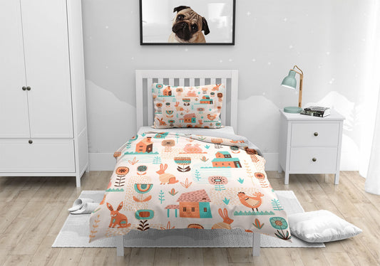 Rabbit Cute Pattern Duvet Cover Set w Pillowcases, Creamy Kids Animal 3D Quilt Cover, 3pc Single Double Queen King Size Doona Cover