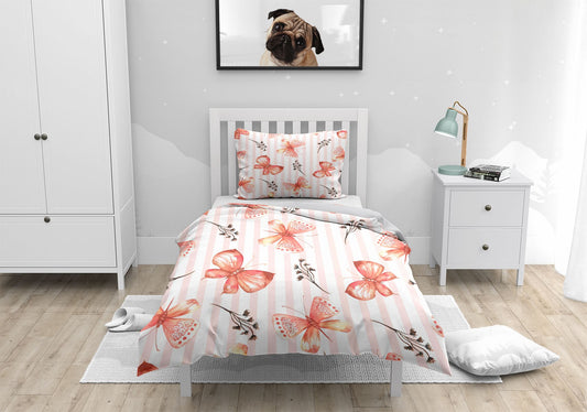 Watercolor Cute Butterfly Duvet Cover Set w Pillowcases, Pink Kids Animal 3D Quilt Cover, 3pc Single Double Queen King Size Doona Cover