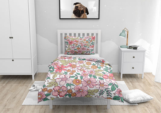 Colorful Flower Duvet Cover Set w Pillowcases, Colorful Kids Patterns 3D Quilt Cover, 3pc Single Double Queen King Size Doona Cover