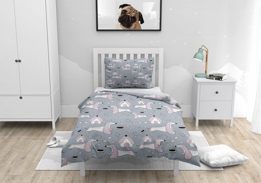 Running Puppy Duvet Cover Set w Pillowcases, Gray Kids Patterns 3D Quilt Cover, 3pc Single Double Queen King Size Doona Cover