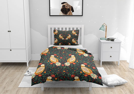 Clouds Cute Owl Duvet Cover Set w Pillow Cover, Green Kids Animal 3D Quilt Cover, Single Double Queen King Size Doona Cover