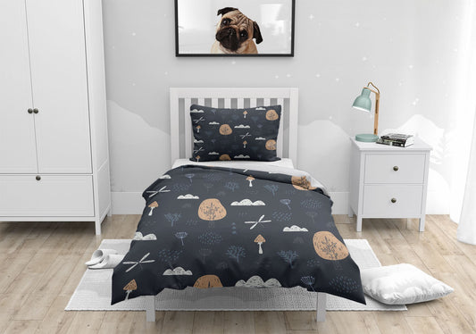 Cute Little Tree Duvet Cover Set w Pillowcases, Dark Kids Patterns 3D Quilt Cover, 3pc Single Double Queen King Size Doona Cover