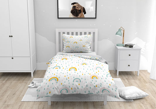 Sky Clouds Rainbow Duvet Cover Set w Pillowcases, Creamy Kids Cartoon 3D Quilt Cover, 3pc Single Double Queen King Size Doona Cover