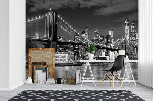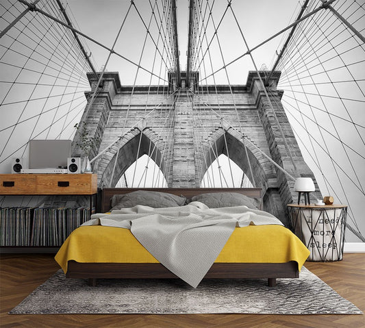 Brooklyn Bridge City Landmarks Black&White Wallpaper Mural,Self-Adhesive Peel And Stick 3D Wall Mural,Bedroom Designer Wall Decor
