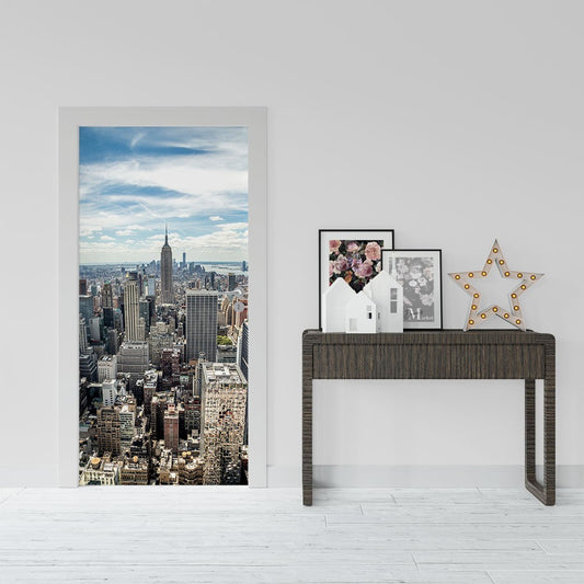 Overlooking Manhattan City Landmarks Door Wrap, Customized Mural For Door, Door Mural Sticker, Peel And Stick Door Cover, Removable Door Decal