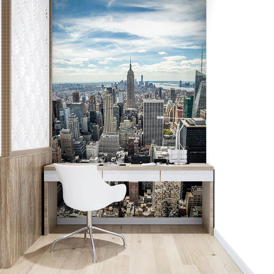 Overlooking Manhattan Landmarks Gray Wallpaper Mural,Self-Adhesive Peel And Stick 3D Wall Decor,Australian Company Bedroom Wall Decor