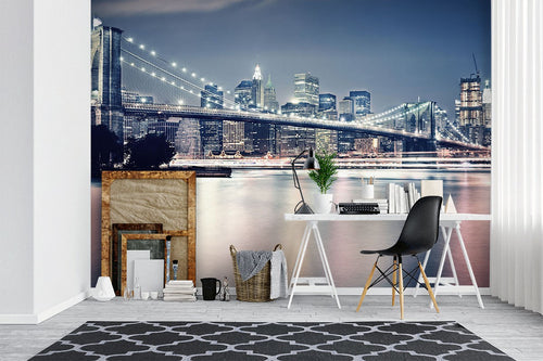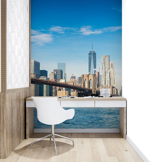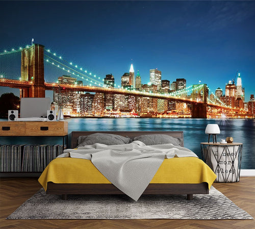 Manhattan Brooklyn City Landmarks Blue Wallpaper Mural,Self-Adhesive Peel And Stick 3D Wall Decor,Australian Company Designer Wall Decor