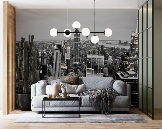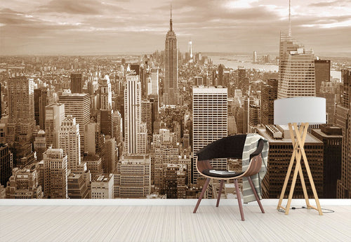 Manhattan Overlooking City Gray Wallpaper Mural,Self-Adhesive Peel And Stick 3D Wall Art,Designer Australian Company Wall Decor