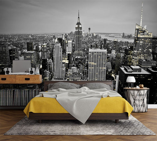Manhattan Night City Landmarks Black&White Wallpaper Mural,Self-Adhesive Peel And Stick 3D Wall Mural,Bedroom Designer Wall Decor