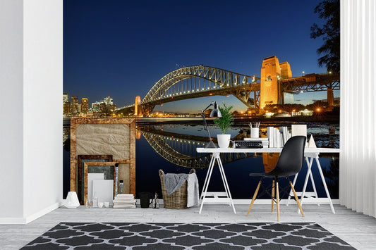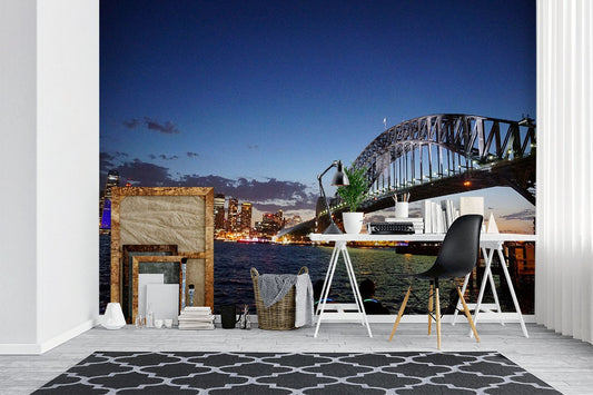Sydney Harbour Bridge Landmarks Blue Wallpaper Mural,Self-Adhesive Peel And Stick 3D Wall Decal,Australian Company Wall Decor